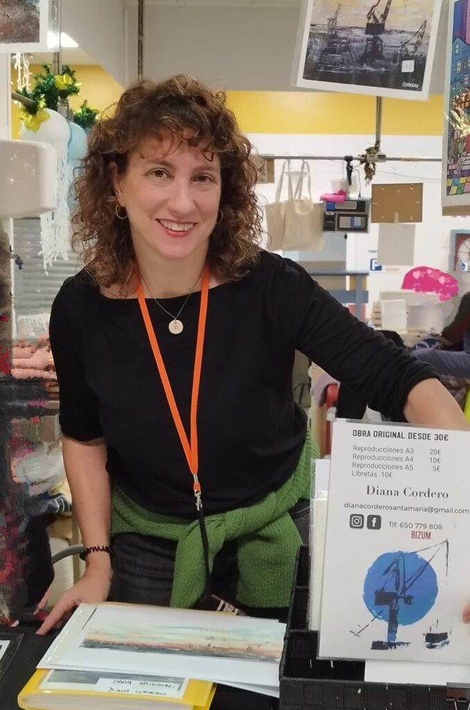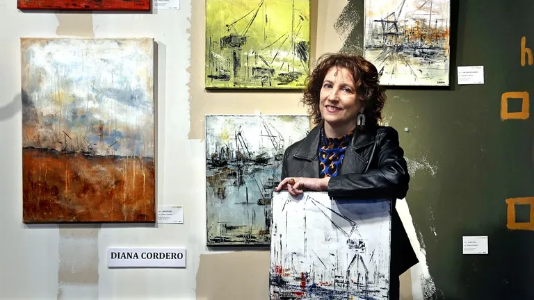 Diana Cordero se inició en la pintura pasados los 40 años y lleva un lustro desarrollando con éxito una carrera como creadora plástica tras debutar con una exposición en la que vendió hasta los marcos.